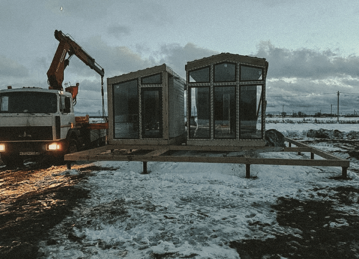 и рассчитывается нашими специалистами. Стоимость доставки будет зависеть от площади дома и удаленности вашего участка. Важно, чтобы к участку был беспрепятственный подъезд. Для доставки мы используем тралы для перевозки негабаритных грузов и манипуляторы для загрузки и разгрузки модулей, которые происходят