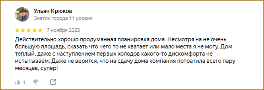 без потери качества. Наши дома подходят для круглогодичного проживания, хорошо сохраняя тепло в русскую зиму. Мы с большим вниманием относимся к пожеланиям наших клиентов, и с удовольствием обсудим ваши нестандартные идеи по проекту и найдём подходящее решение.