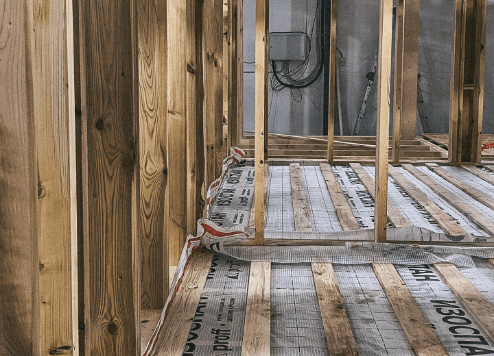 Выполняется утепление дома, монтаж ветрозащитной и параизоляционной мембраны с проклеиванием всех стыков, монтаж окон, монтаж внутренней обрешетки под чистовую отделку, установка закладных труб под коммуникации и вентиляцию.