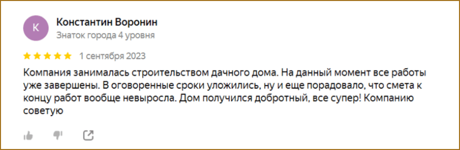 На протяжении всего строительства мы отслеживаем: сортировку древесины, качество сборки каркаса (узлы примыкания, запилы), утепление (перекрытие стыков слоёв, правильную укладку), ветрозащиту, пароизоляцию, наружную отделку, внутреннюю отделку, подключение канализации/водоснабжения/электроэнергии. Для проверки качества вашего дома, вы можете приезжать на любом этапе строительства.